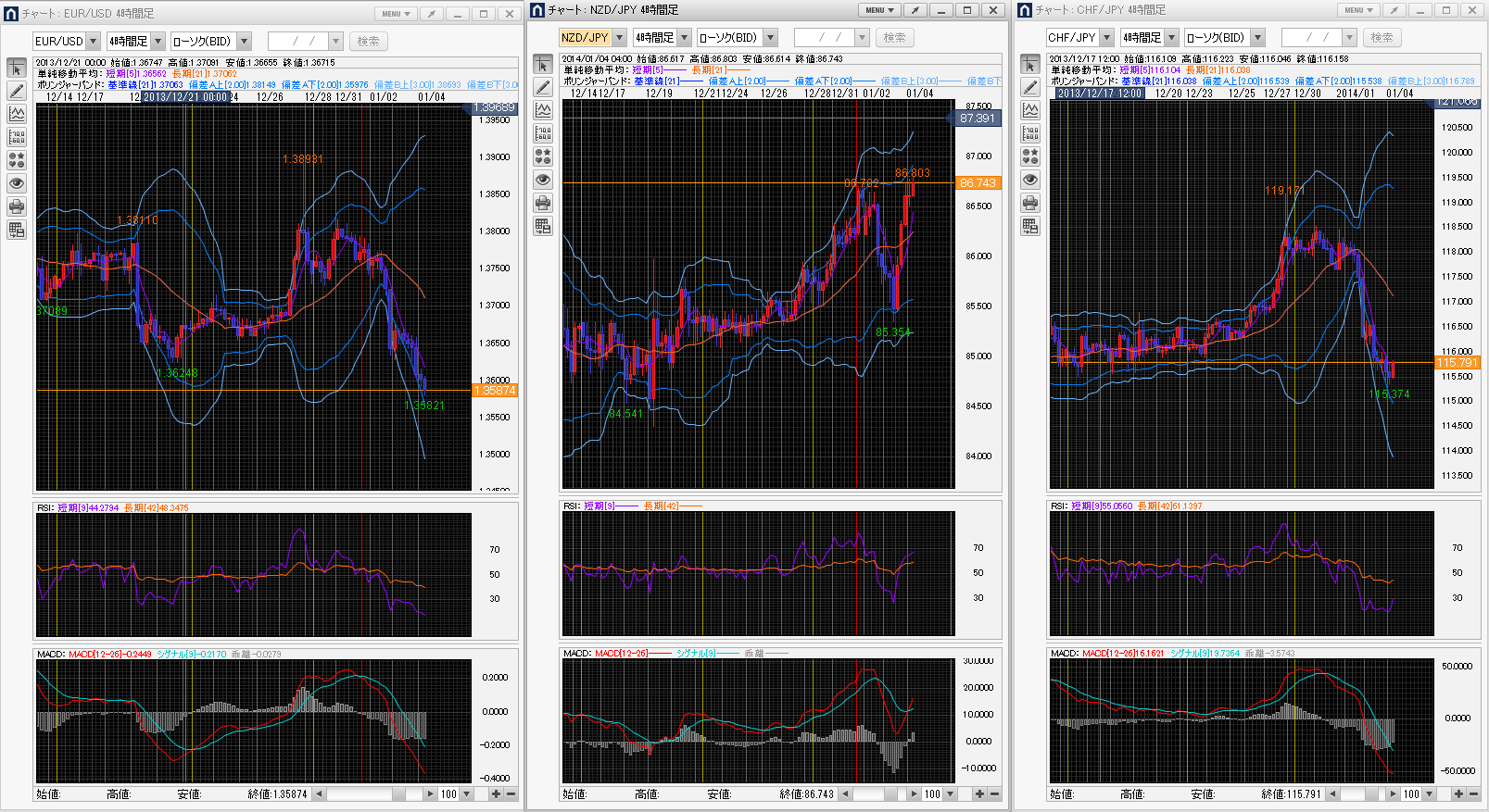 トレード[LONG-買い] :ユーロ/円、NZ㌦/円、カナダ㌦/円、