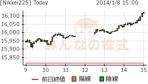寄り付きから上値を追う展開で、後場に16000円台回復するや、上昇相場になった。引け際はやや過熱気味という感じになっている。