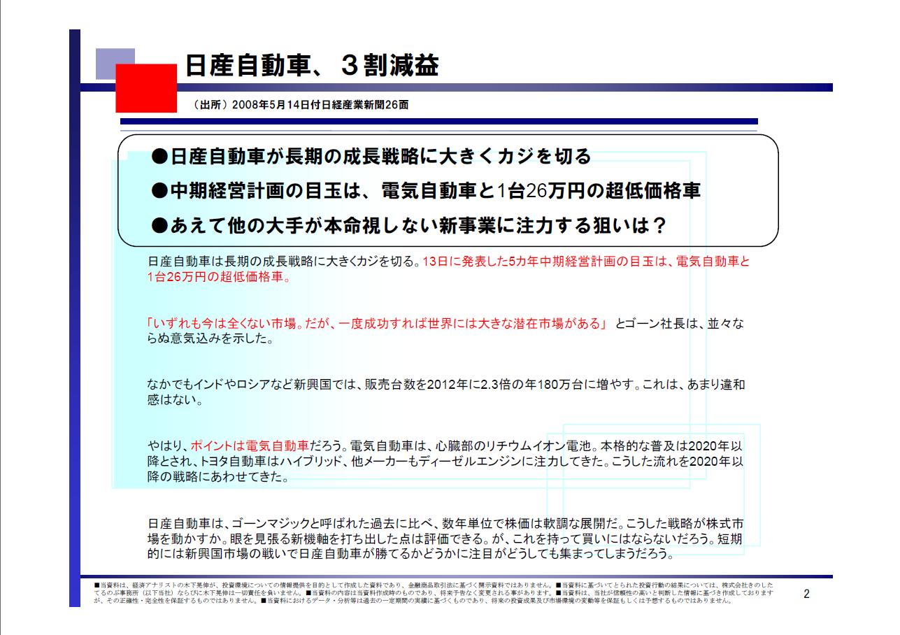 短期的には新興国市場の戦いで日産自動車が勝てるかどうかに