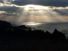 遠くを見ると傾いた午後の太陽が雲間から神々しい光線を放っています