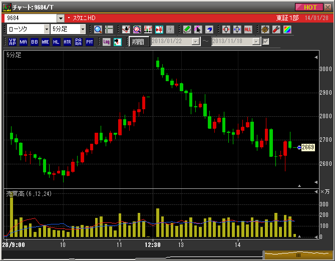 9684 スクエニHD 日中足チャート(5分足)