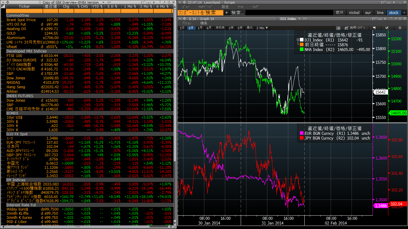 アルゼンチン/南アの通貨安に、中国の景気減速懸念と大荒れの相場でだった。