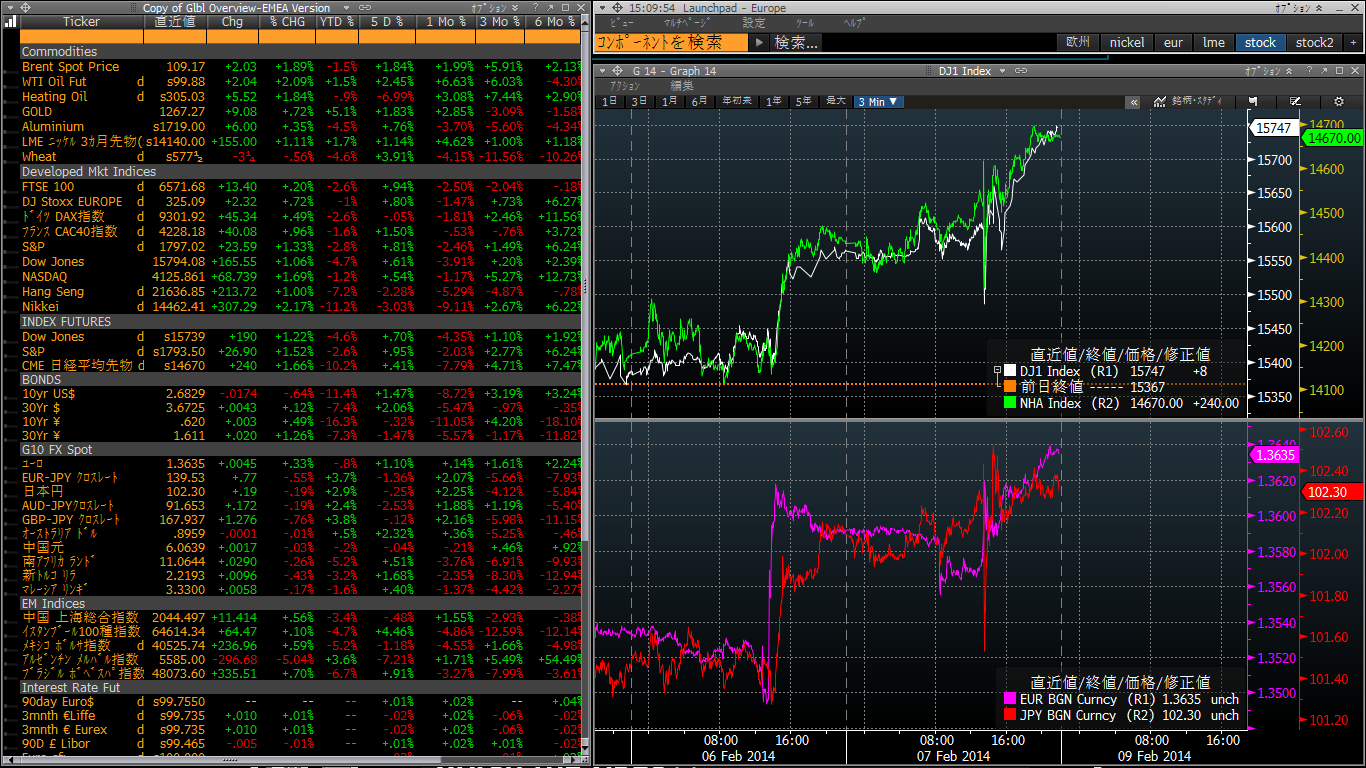 それを受けて、米国株高、日経先物も14670円クローズ。