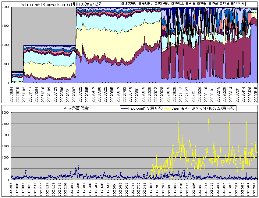 kabu.comPTSの引けの注文状況と、売買代金のグラフです。