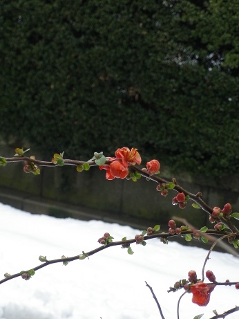 写真は庭の木瓜です。もう咲き始めました。去年は初めて木瓜に実が成ったけど、台風で落ちてしまいました。今年も実が成るかな。