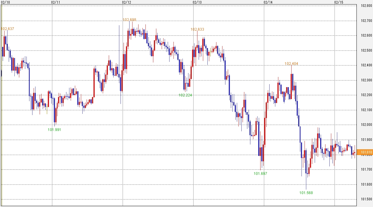 2月10日~2月14日の週。ドル円相場は1ドル=101.56~102.69円