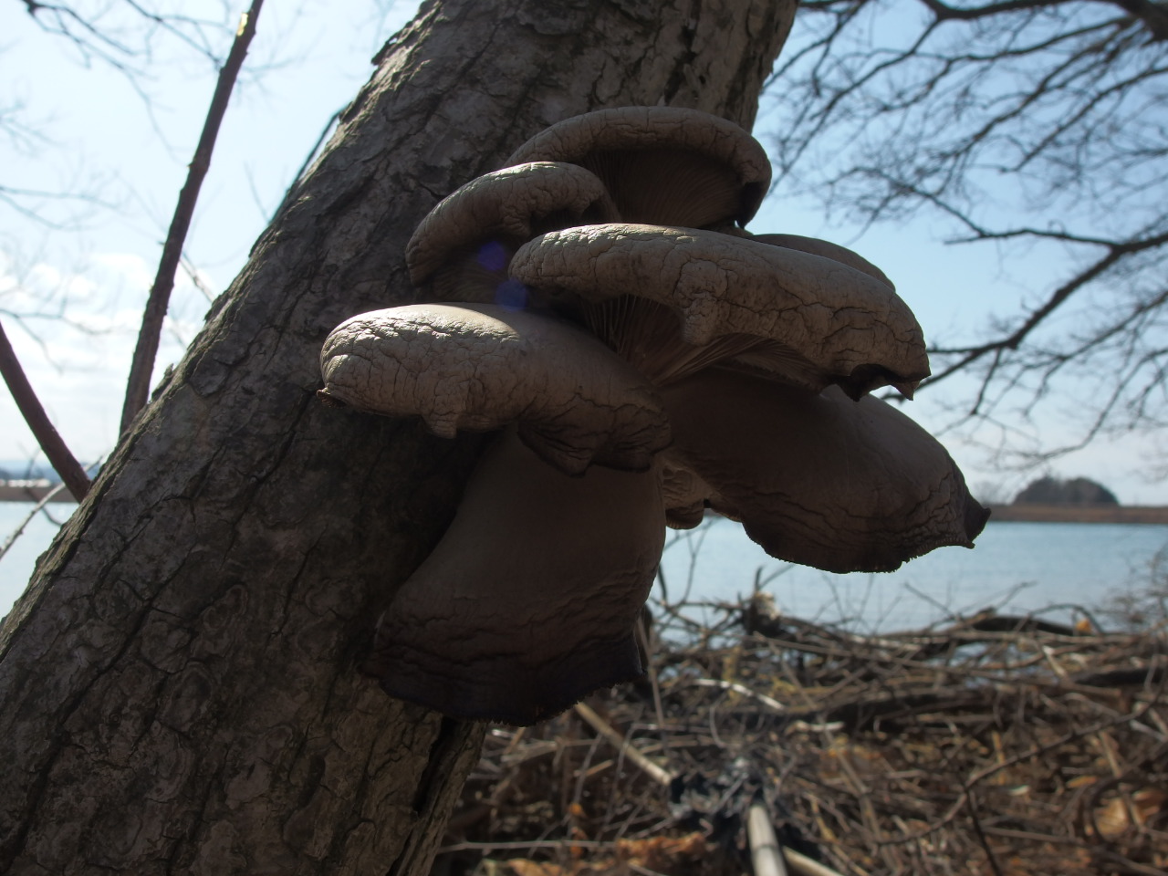 柳の古木にヒラタケが大株で生えてました