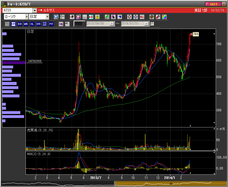 そんななか、東証一部で目に付いたのが6723 ルネサス。