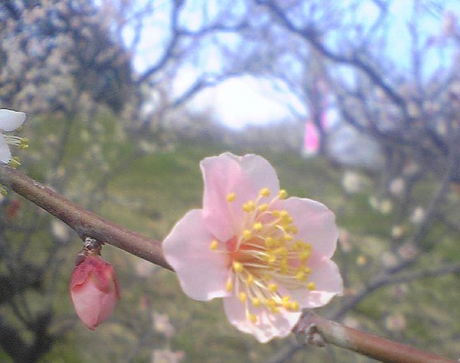 そうり梅です。18度で蜜を求めて、ミツバチが飛んでます。