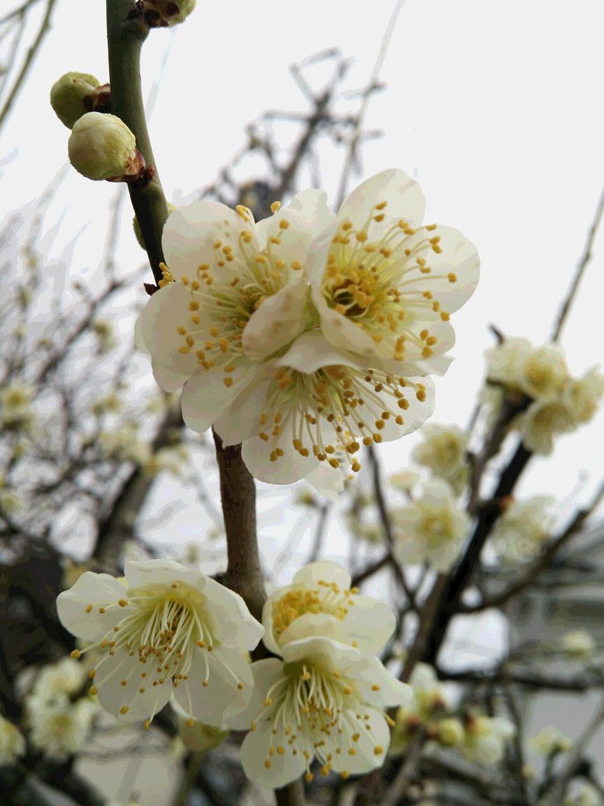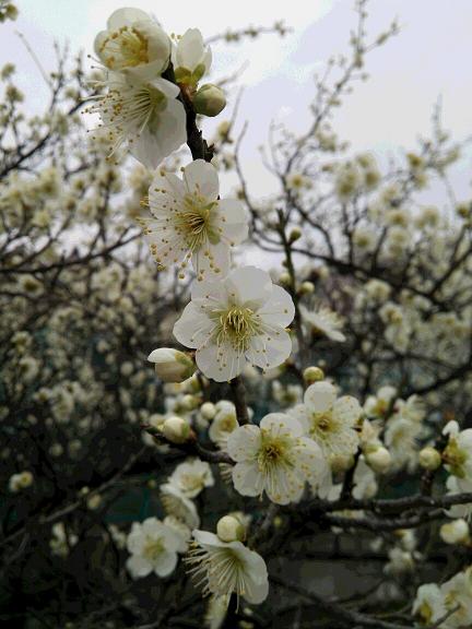 自宅近くの梅は、先週はまだ咲き始めたばかりでしたが、昨日見てみると、写真のとおり木によっては満開間近になってきました。