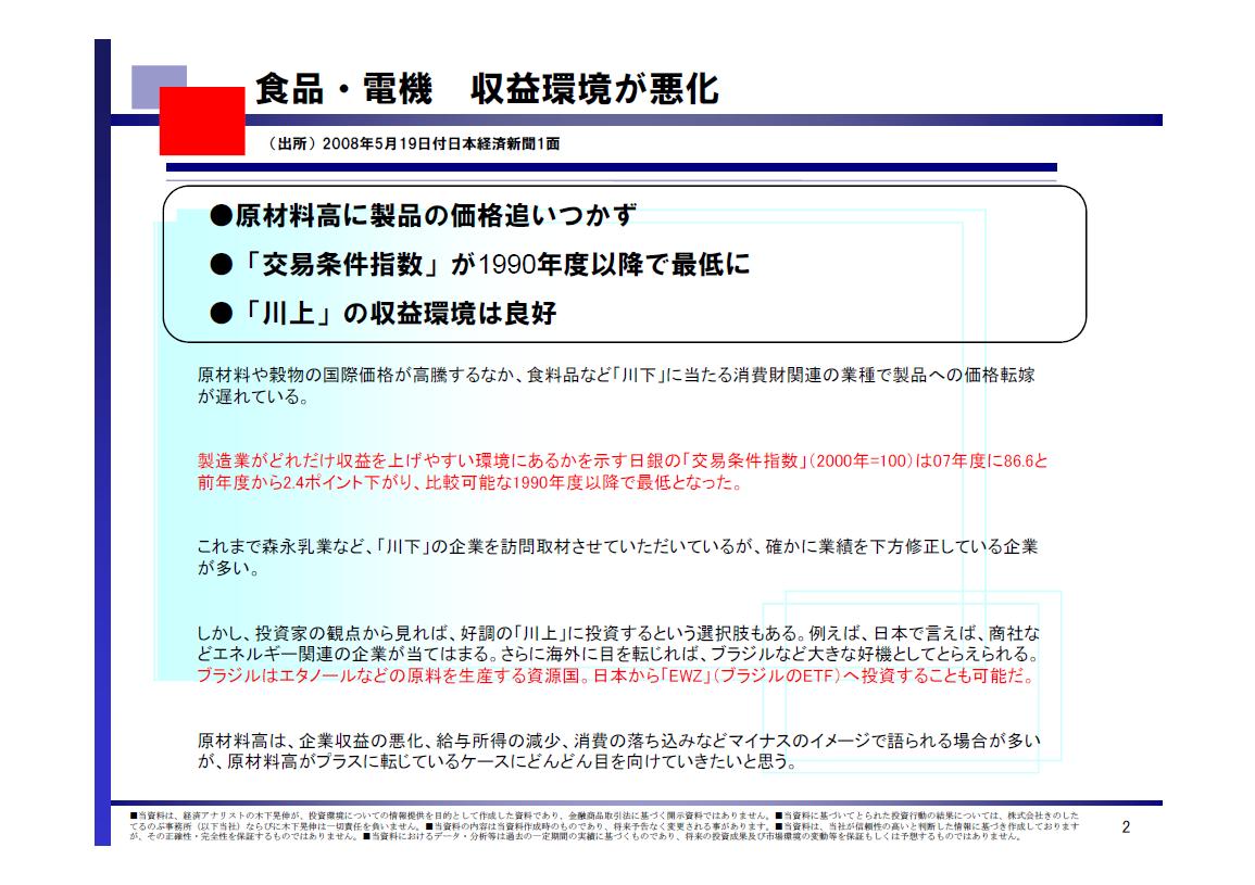 原材料高がプラスに転じているケースにどんどん目を向けていきたいと思う。