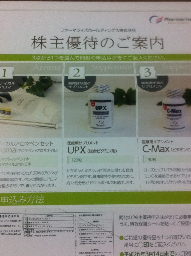 ので、優待拡大でサプリメントは良かったです。
