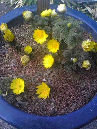 福寿草の葉が大分広がっていますね、もう最盛期を通過した感じですが