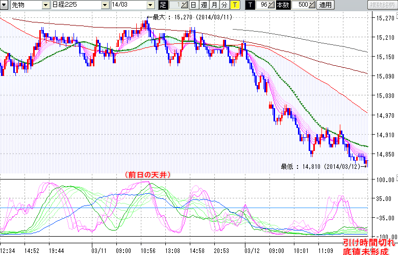 底値 : 引け時間切れ、底値未形成
