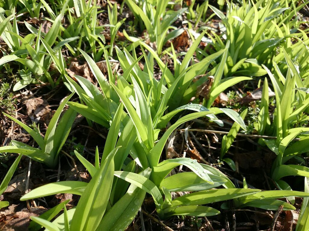 土手にはカンゾウの若い芽がびっしりと生えてます