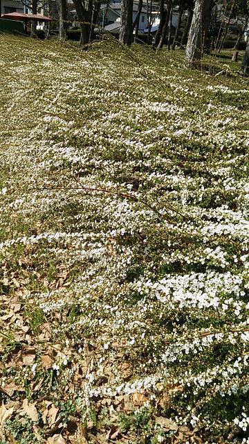 満開になれば雪に覆われたように真っ白になりますが、まだ咲き始めたばかりなので、写真のとおりまだ斑模様のようになっています。