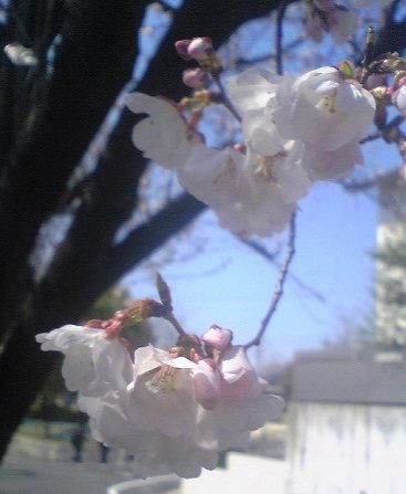 主に四種類の桜が認められ、小彼岸桜、彼岸桜、東海桜が一気に満開に。