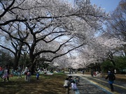 駒沢公園内の桜。春休みなので子供もいっぱい。テニスをやっているのは奥様方か中高年のオジさんばっか