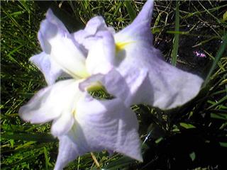 偶然目の前に蝶が舞い降りました。ヘビは勘弁してほしいですが。こういう珍客は歓迎です。食草の柳の木は近くにありますし、たくさんいるんでしょう。8月もきれいなものを見ますから年2回出てくるようです。このまわりにこんな花がありました。花ショウブ?もまだ早いのかつぼみが多い中、紫の花だけ咲いていました。