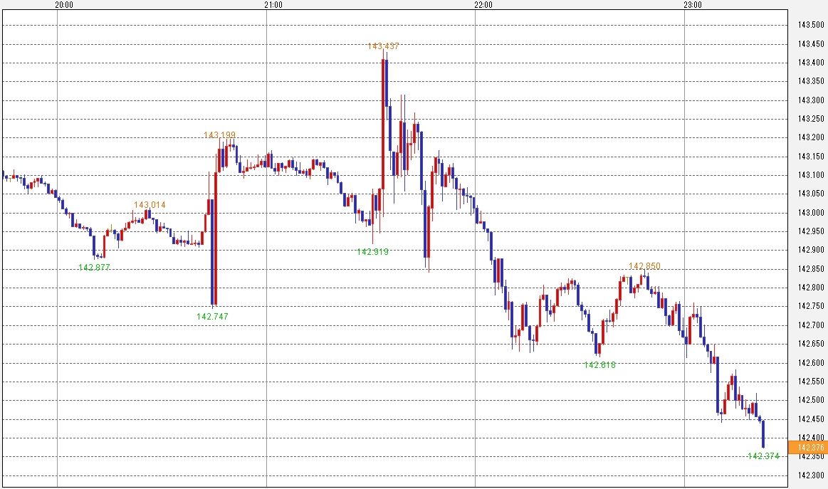 まず、20:45に(欧)ECB・金融政策発表がありました。これについては事前の予想通り現状維持の据え置き判断となり、追加緩和を期待していた反動から、この時間帯はややユーロ高に傾きました。