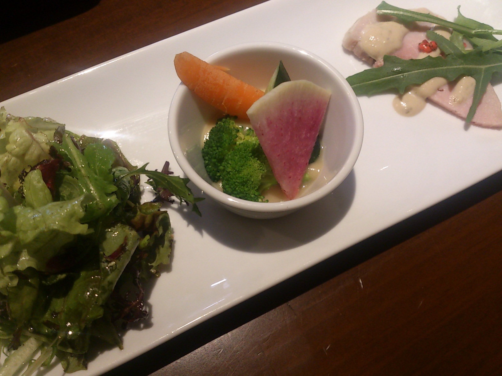 前菜→パスタ+ビザと美味しく頂きました。≠( ̄~ ̄ )モグモグ