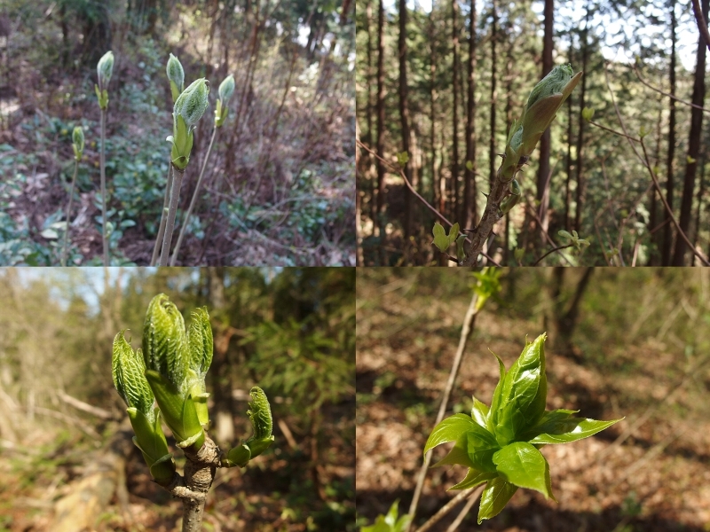 私はタラも採りますがコシアブラの芽、タカノツメの芽、ハリギリの芽、ハナイカダの芽も採ります
