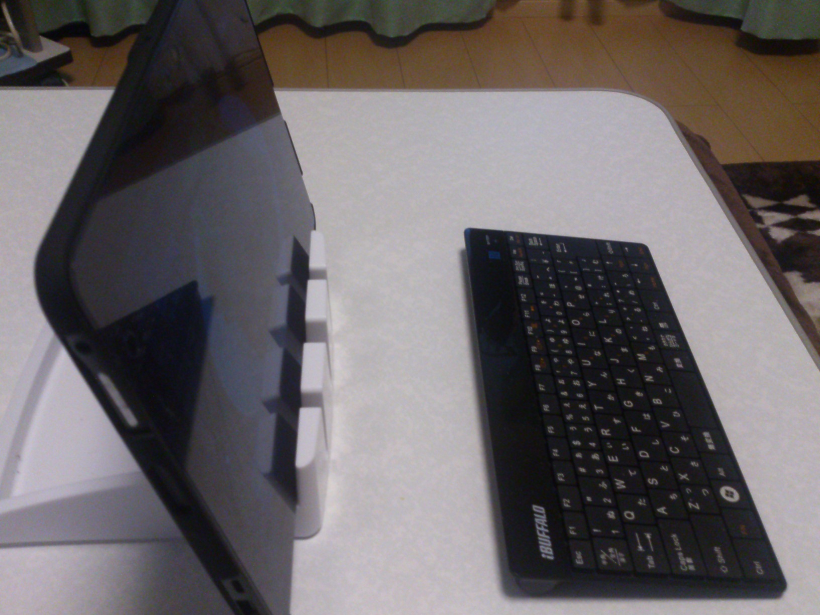 タブレットを置く台は100円ショップで調達して、キーボード(Buletooth)+マウス(USB無線)