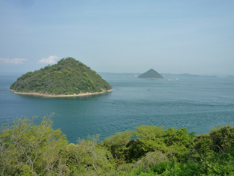 おむすびのような島が二つ見えます。手前が小槌島(こづちしま)、向こう側が大槌島(おおづちじま)