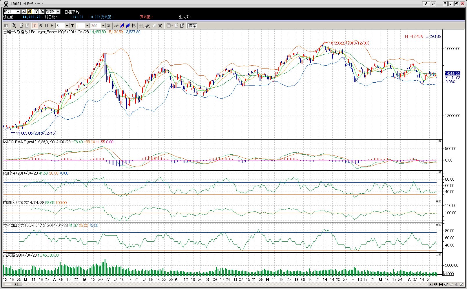【解説!?】[日経平均 14288.23(14516.27)]()は1週間前