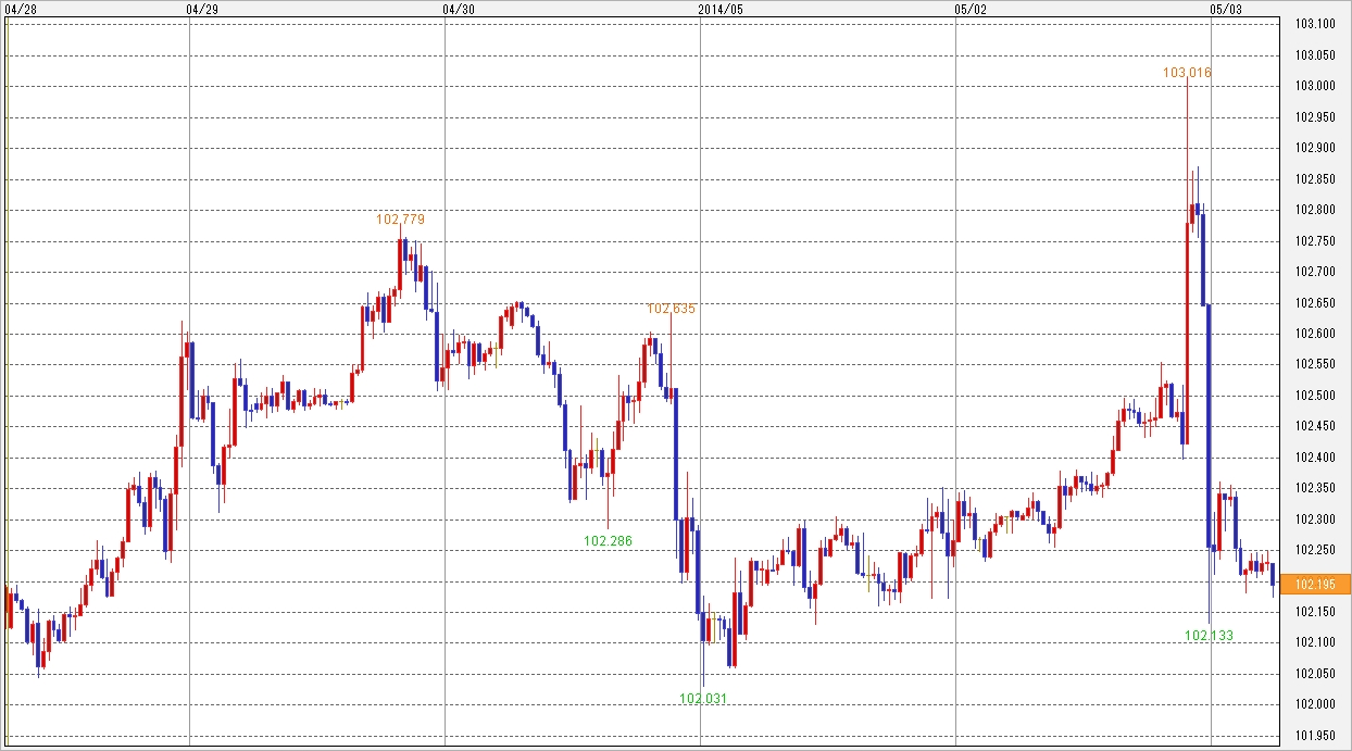 4月28日~5月2日の週。ドル円相場は1ドル=102.03~103.01円