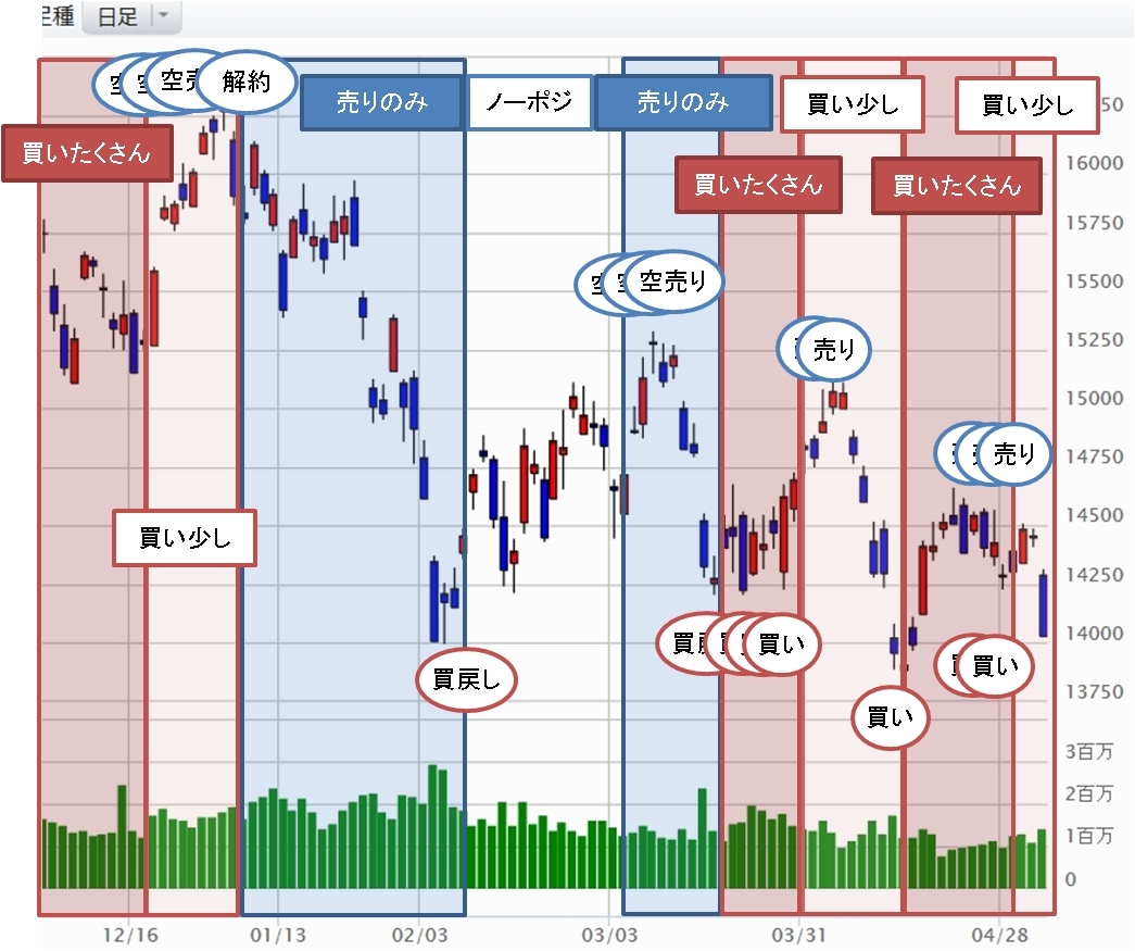 2枚目は、自分のトレードのタイミングとポジションの状況です。