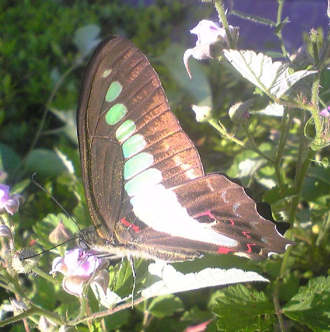 野イチゴ(ナワシロイチゴ)の花の蜜を吸うアオスジアゲハ。