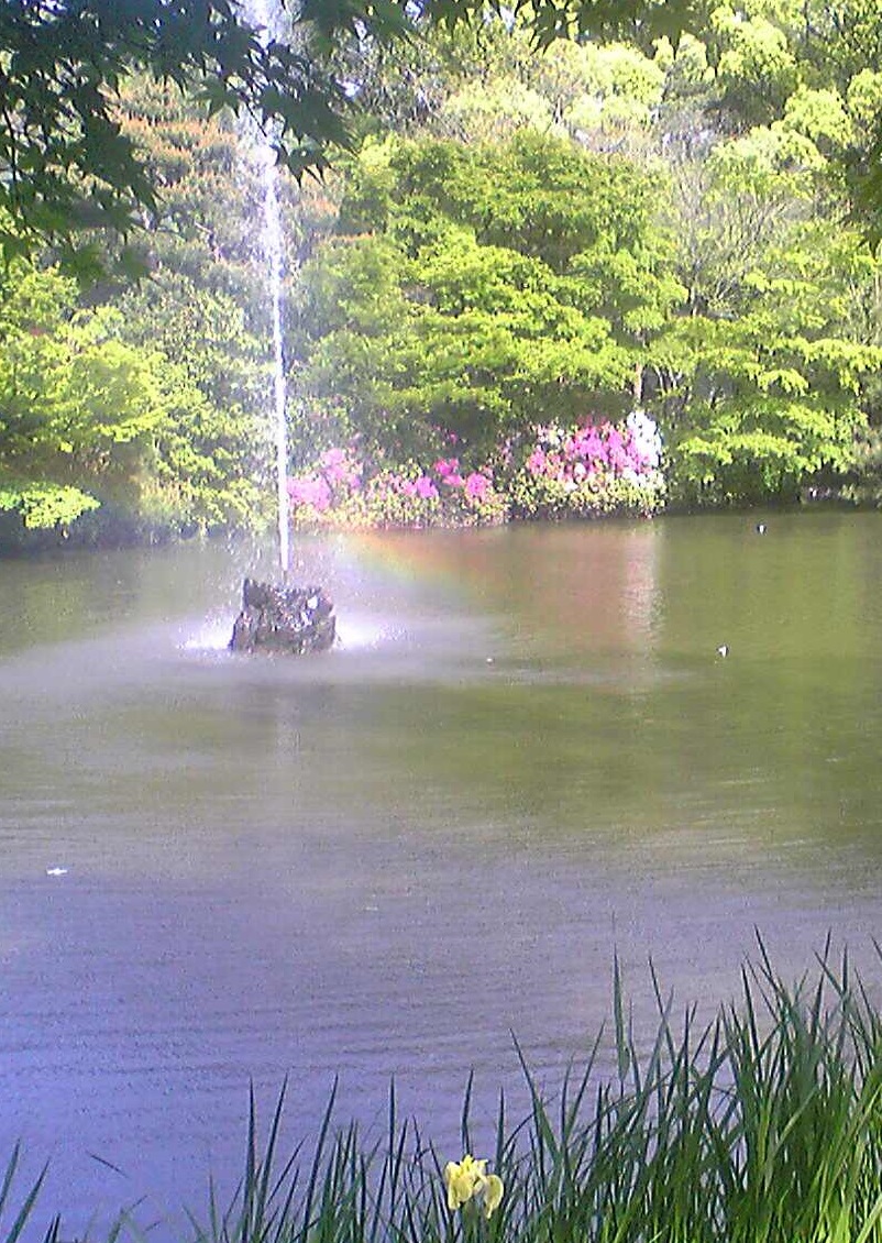 虹の懸かったツツジ、カキツバタも綺麗です。