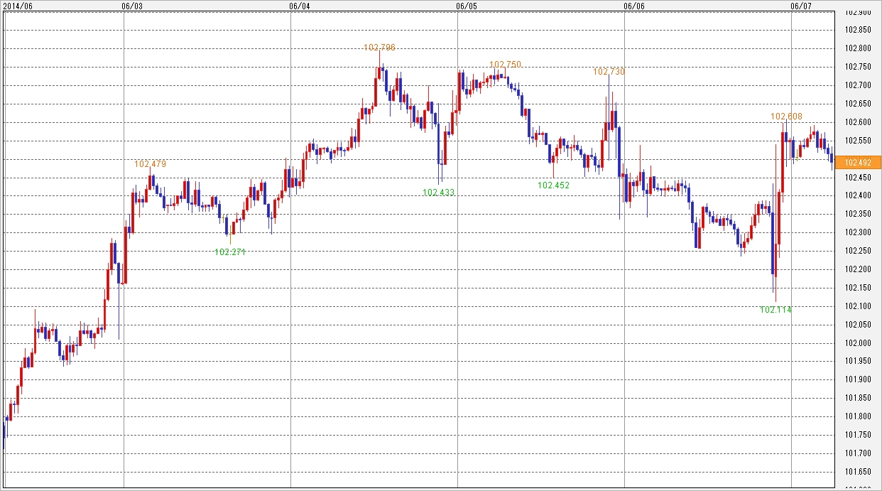 6月2日~6月6日の週。ドル円相場は1ドル=101.75~102.79円