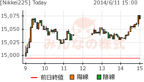 ちなみに、日足では25日移動線が75日移動線をGC直前となっているが、MACDはDC前でRSIも80超となっていて、上値重い模様。週足ではまだまだだったが、今週中に15100円を確定的に出来ないと15000円あたりを当面の底値と見ることは難しいのでは。
