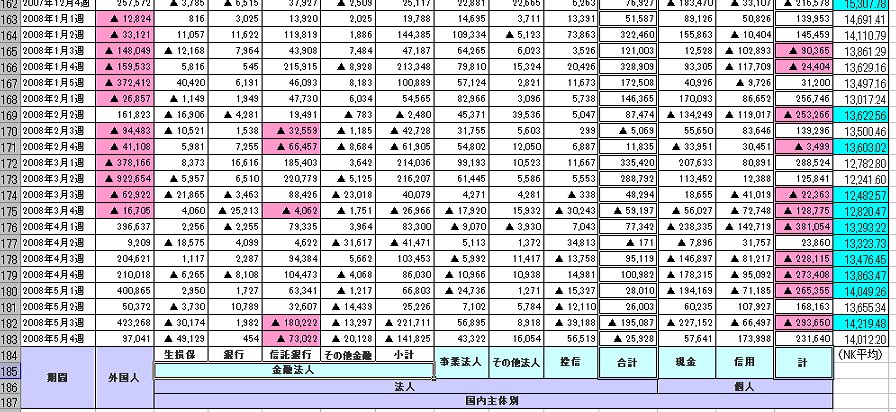 年金資金が多いと思われる信託銀行が2週連続で売り越しました。