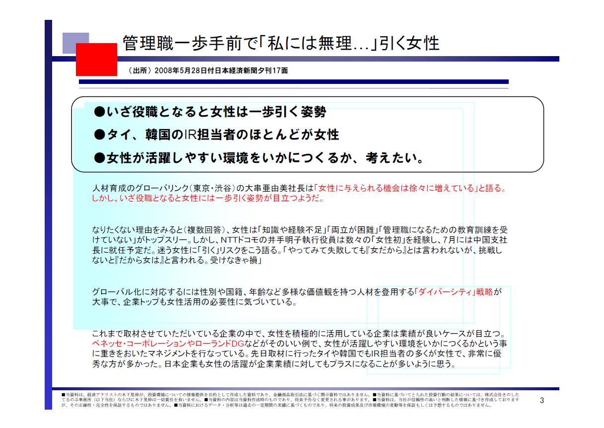 日本企業も女性の活躍が企業業績に対してもプラスになることが多いように思う。