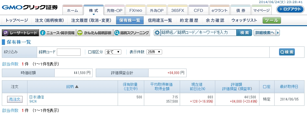 保有株状況@GMOクリック証券:含み損益+84,000円