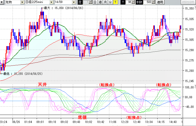 ※指標ラインの密集点が天底・転換点を示します。