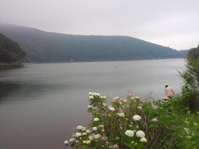 湖で、紫陽花が水際にさいていて、人影もまばら、わんちゃんにもいいというキャンプ地です。