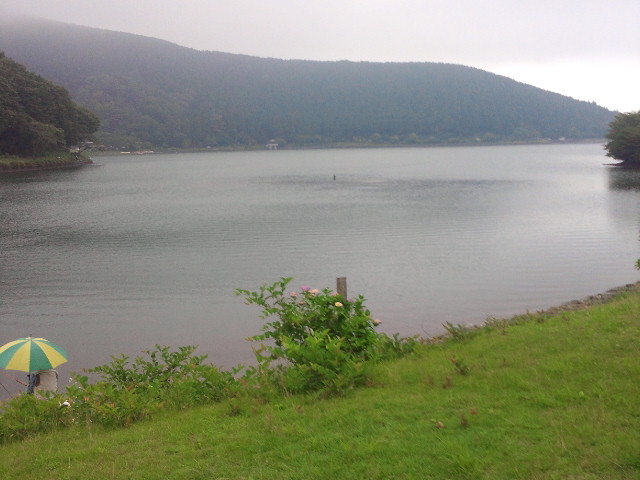 まかいの牧場で食事の後田貫湖に行きました、きりもあり、雨模様寸前の湖は何とも、不思議な