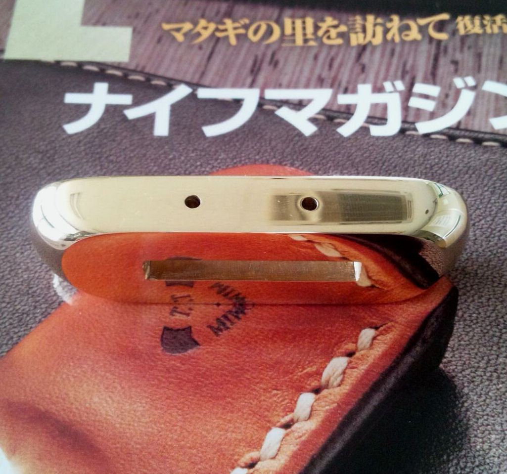 鏡面仕上げを終えたら、加工済みのヒルト(写真)を