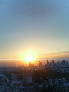 高層ビルに夕日が沈むという、都会でもこんな美しい風景が見られるとは驚きでござる。高層階のようなので、冬の晴れた日には富士山や丹沢が望めるのでは?