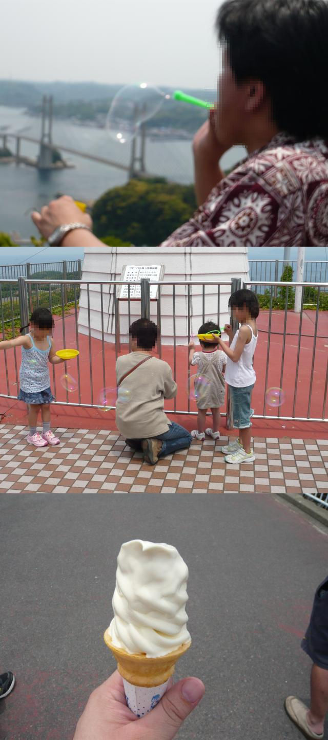 そんな訳で、童心に返ってシャボン玉を飛ばす面々(写真左下)(写真中央上