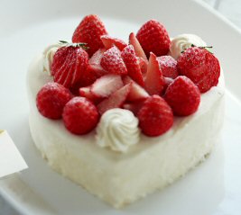夕食の後で、家族がいちごのケーキにろうそく立てて祝ってくれました。この写真は、JALからのバースデーメールについていた壁紙なのですが、あまりに奇麗なので貼ってみました。これとは少し違いますが、こんな雰囲気のケーキを頂きました。