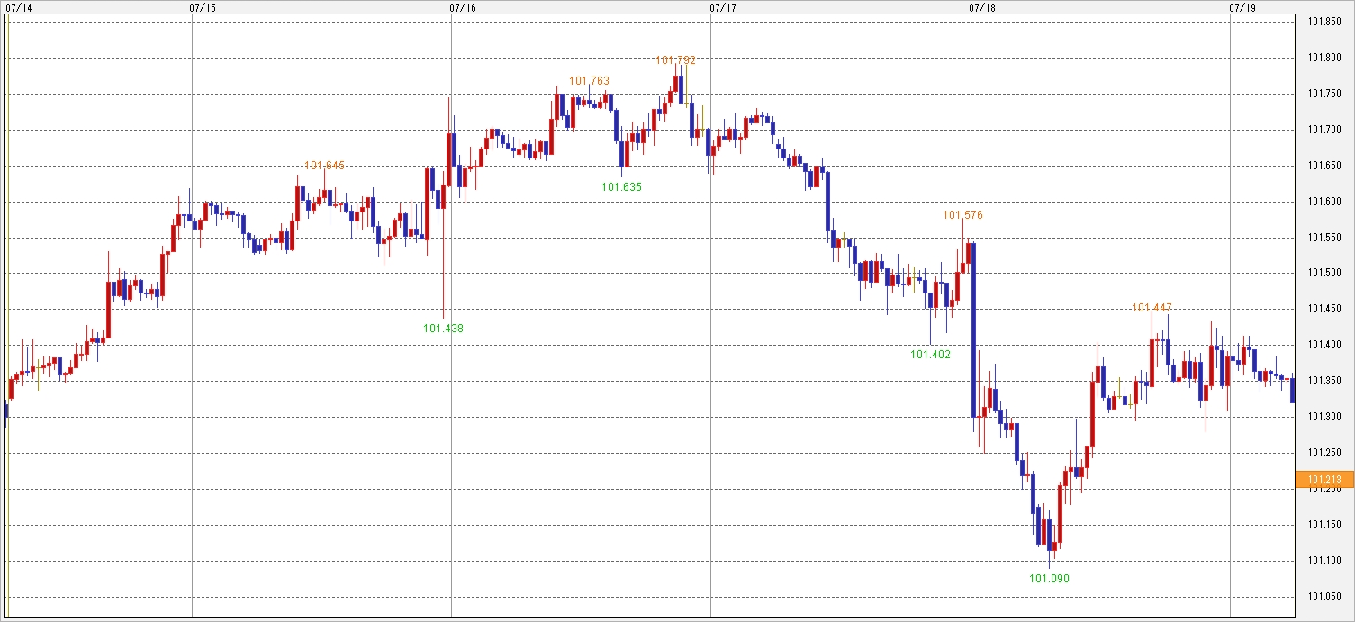 7月14日~7月18日の週。ドル円相場は1ドル=101.09~101.79円