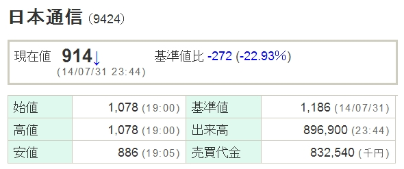 日本通信で死にました…決算がヤバ過ぎてダダ下がり【