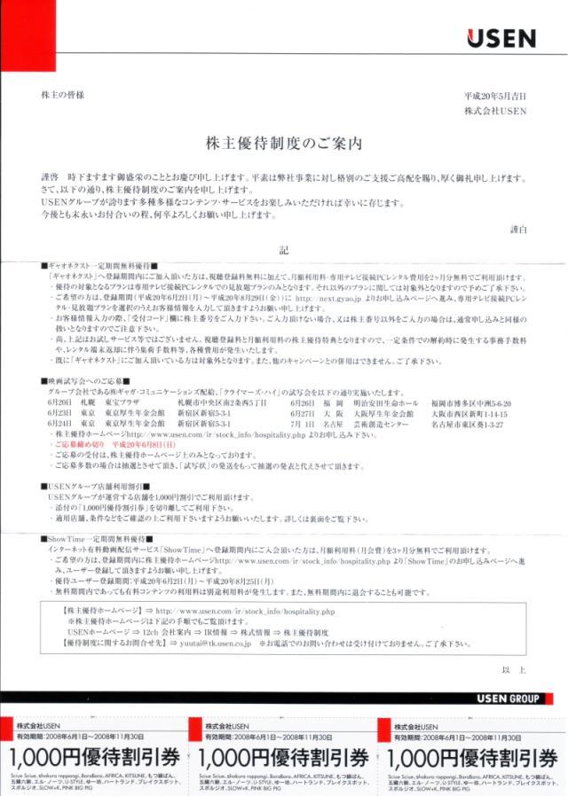 私もUSENに併合される前の銘柄をほったらかしにしていたらUSENになっちゃった(元はギャガ)んですが、売るのも面倒だし…(爆)