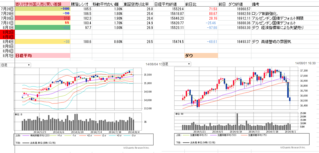 練習として日経の今の状況簡単に。あくまでシロートの見解。