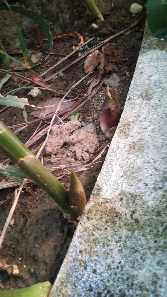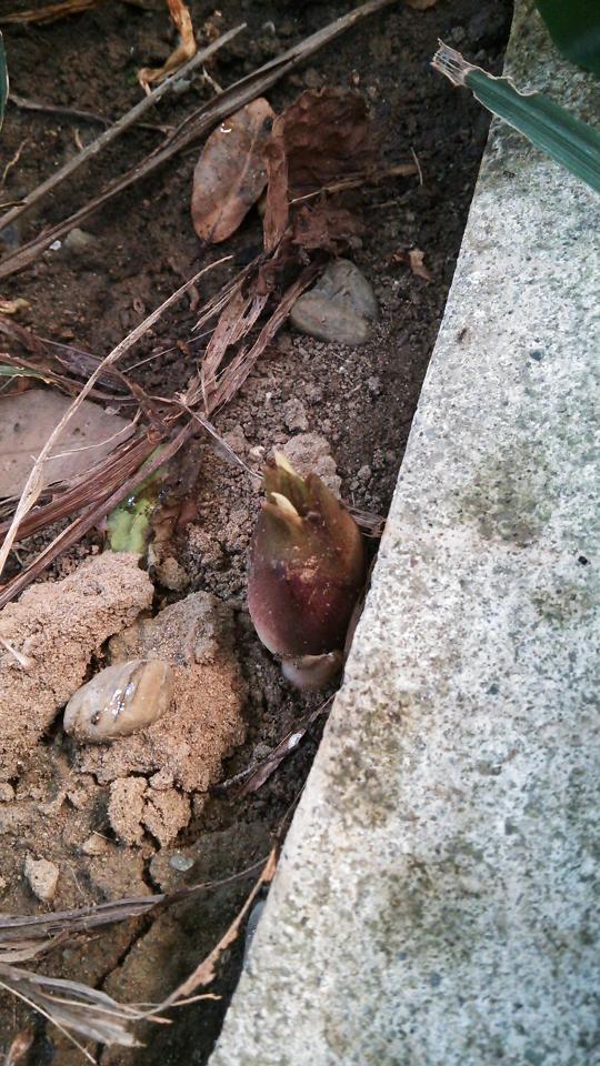 1・2枚目の写真のように、ミョウガの茎の近くからひょっこりと顔を出してきます。